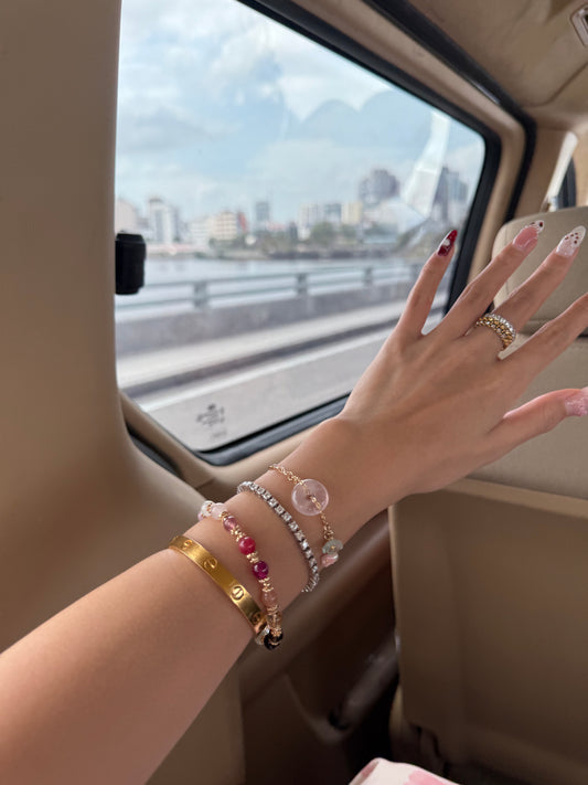 *Instocks* Strawberry Quartz Ping An Kou 平安扣 Duobao Crystal Bracelet (Elastic)