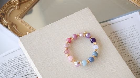 *Instocks* 10mm Duobao 多宝 (Multi Gems) with Bouquet Crystal Bracelet (Elastic)