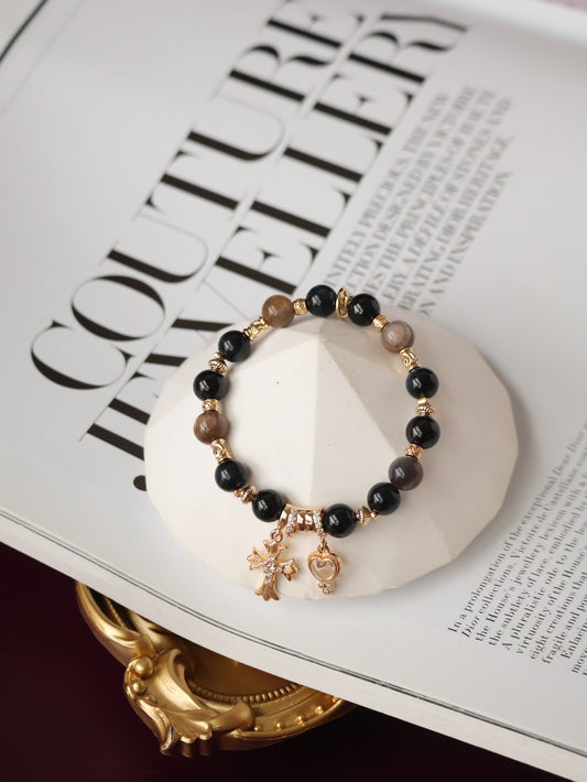 *Instocks* Cross x Heart - 8mm Black Tourmaline, Blue Tiger's Eye, Black Gold Skeletal Sunstone (Elastic)