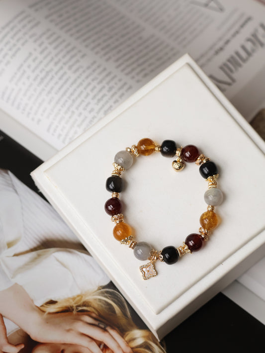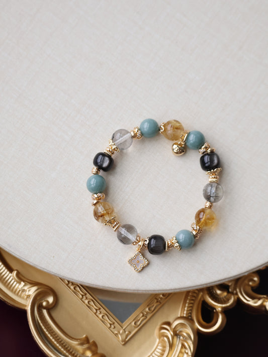 *Instocks* - The Luxe Edit - 10mm Citrine, Black Obsidian, Herkimer Diamond & Blue Water Jadeite with Clover Charm (Elastic)