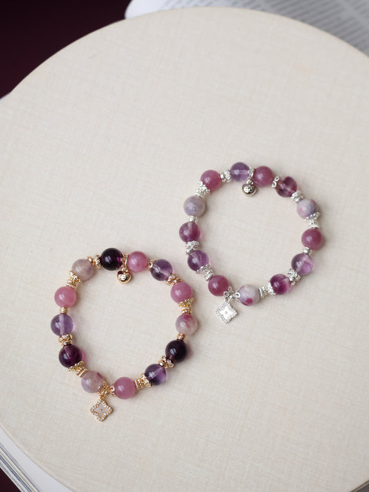 *Instocks* - The Luxe Edit - 10mm Lavender Rose Quartz, Amethyst, Unicorn Stone & Purple Fluorite with Clover Charm (Elastic)