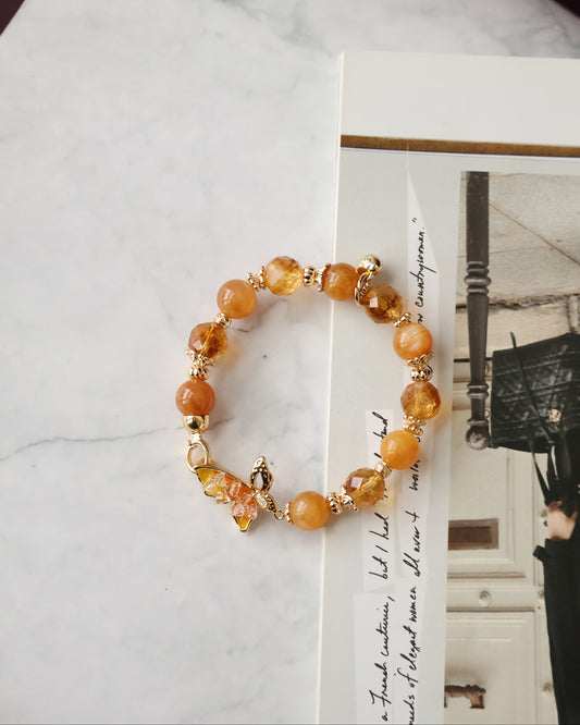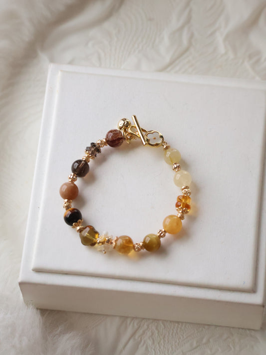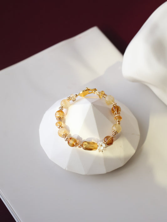 *Instocks* Cheru Customs - Faceted Azeztulite Citrine, Faceted Citrine Freeform & White Phantom Quartz with Flower Charm Crystal Bracelet