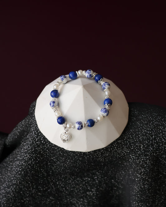 *Instocks* Chinese Porcelain Inspired - 8mm Lapis Lazuli with Heart Dangly
