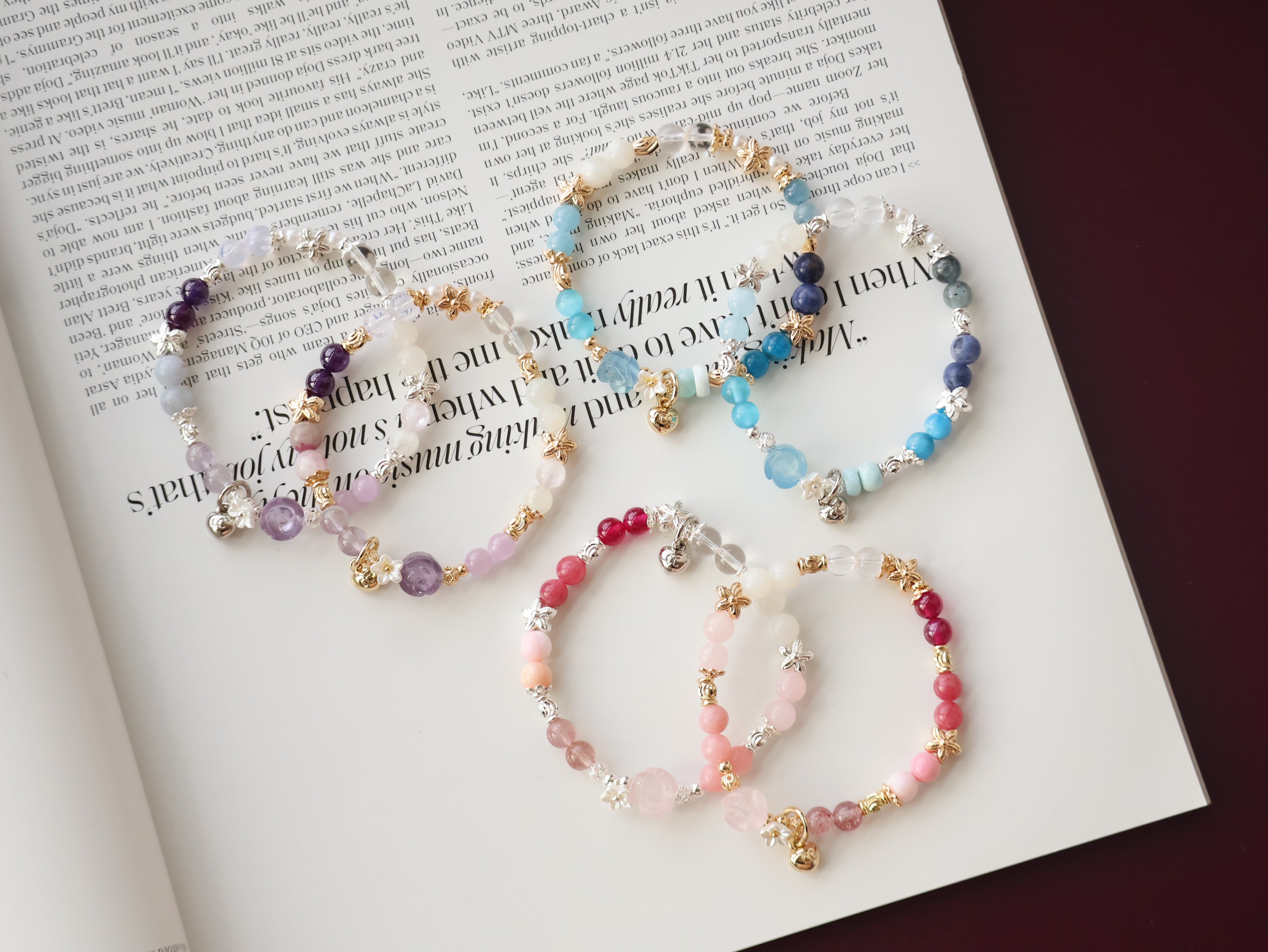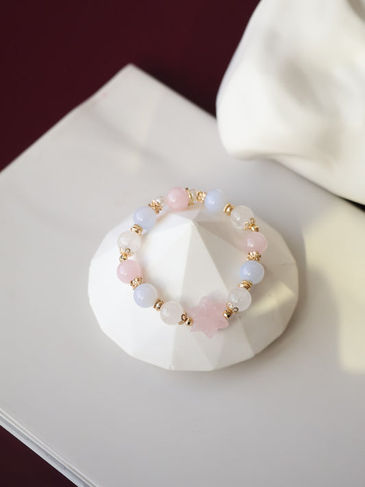 *Instocks* Starley - 10mm Blue Chalcedony, White Phantom Quartz & Rose Quartz with Rose Quartz Snowflake Charm (Elastic)