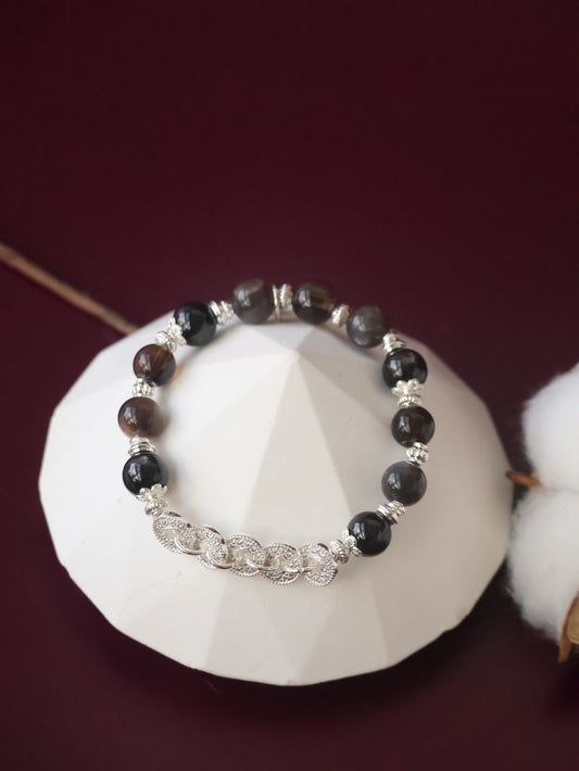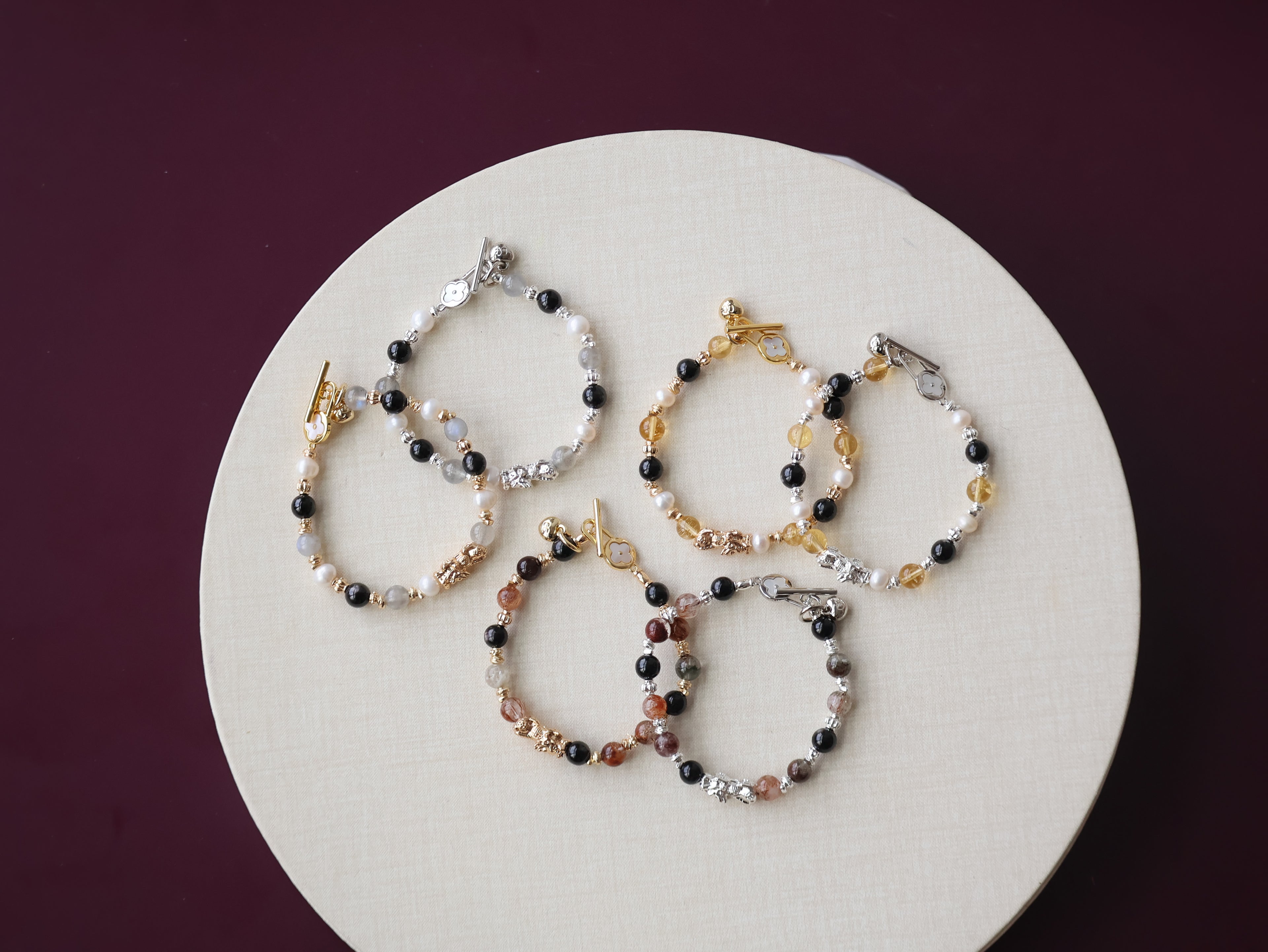 *Instocks* Fengshui Coins Vincere - 8mm Hyperstene, Smokey Quartz, Black Skeletal Sunstone (Elastic)