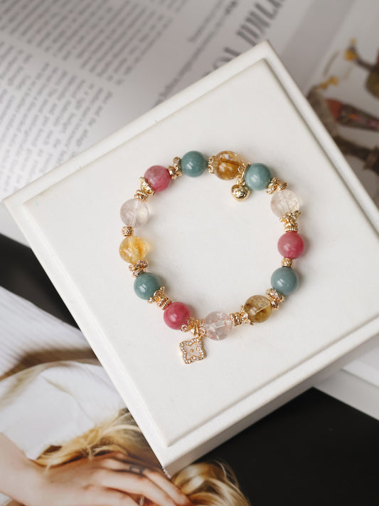 *Instocks* - The Luxe Edit - 10mm Citrine, Rhodonite, Rose Quartz & Blue Water Jadeite with Clover Charm (Elastic)