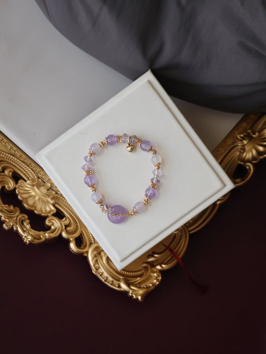 *Instocks* Odette - 8mm Amethyst & Lilac Chalcedony Ping An Kou 平安扣 with Bouquet (Elastic)