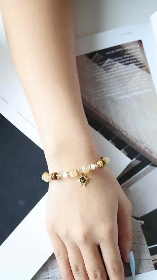 *Instocks* - Fengshui Coins Prospera - 8mm Citrine & Tiger's Eye (Elastic)