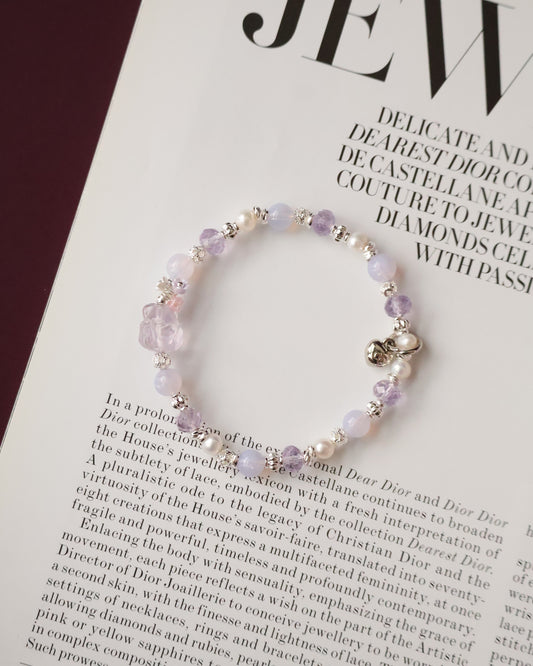 *Instocks* Ameliora - 6mm Nine Tail Fox Amythest Carving with Fresh Water Pearl (Elastic)