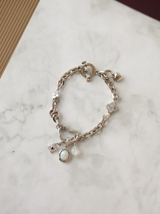 *Instocks* Heart Chain Bracelet with 8mm Moonstone, Lock and Tear Charm Danglys