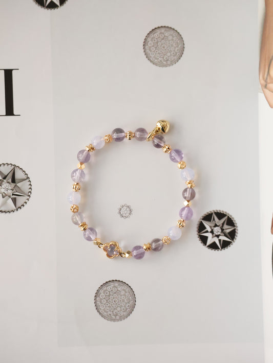 *Instocks* Blooming Bouquet - 8mm/10mm Pink Purple Emerald Mica, Lilac Chalcedony & Rose Quartz with Pink Flower & Mini Flower Bouquet Natural Crystal Bracelet (Elastic)