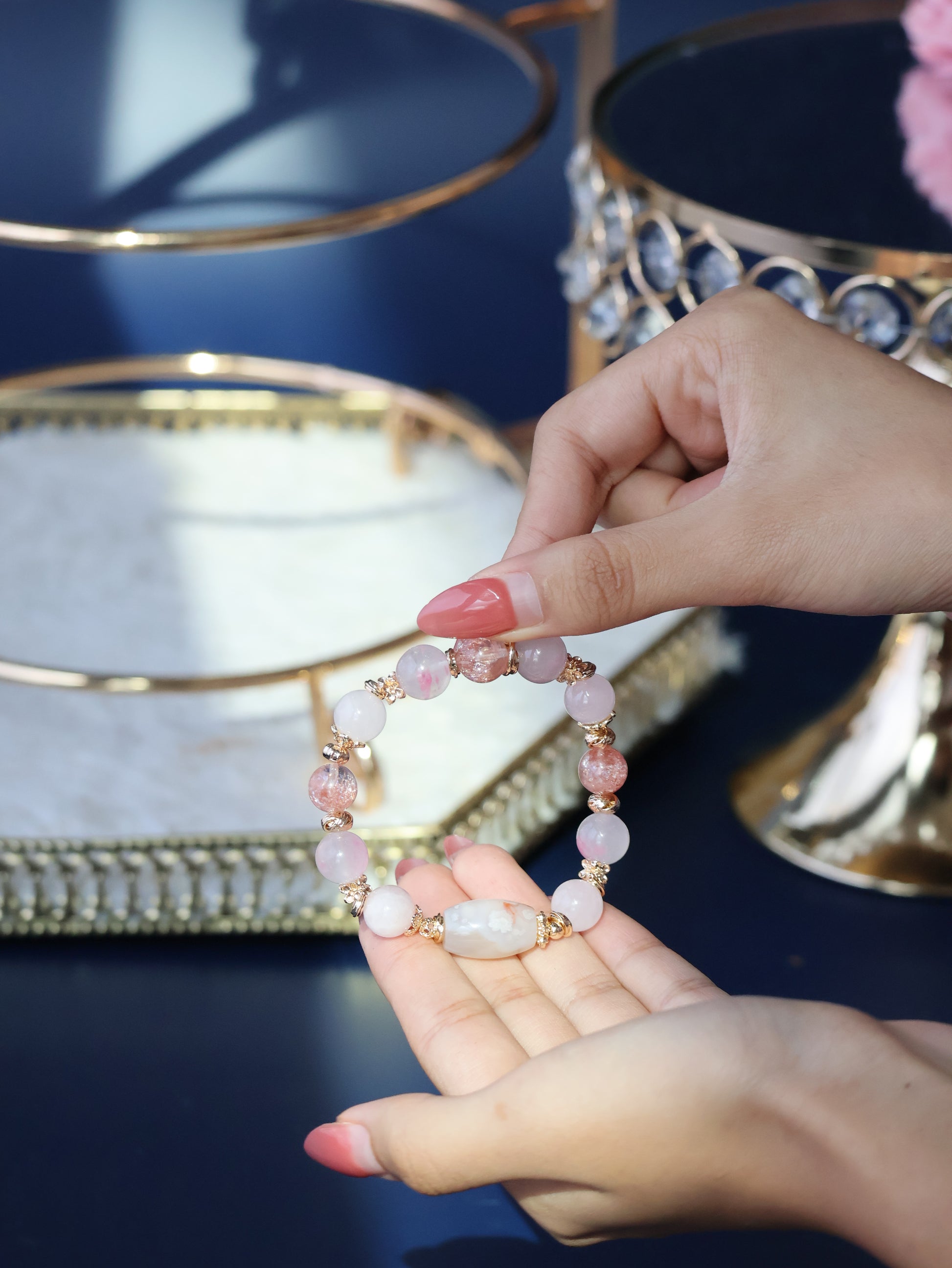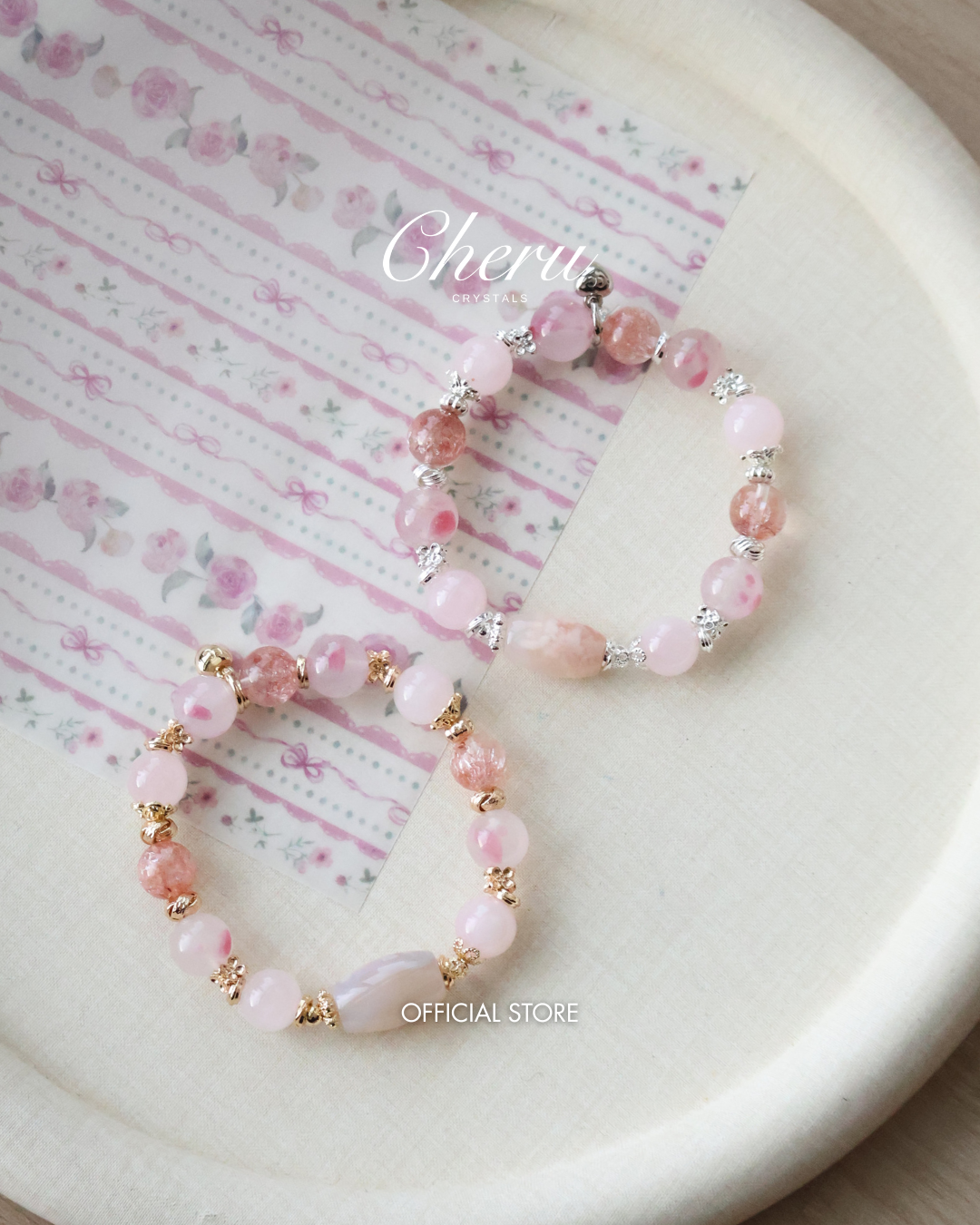 *Instocks* Pink Slushie Inspired - 10mm Flower Agate, Rhodonite, Rose Quartz (Elastic)