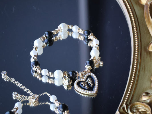 *Instocks* Cherie with Heart & Ribbon Natural Crystal Bracelet (Elastic)