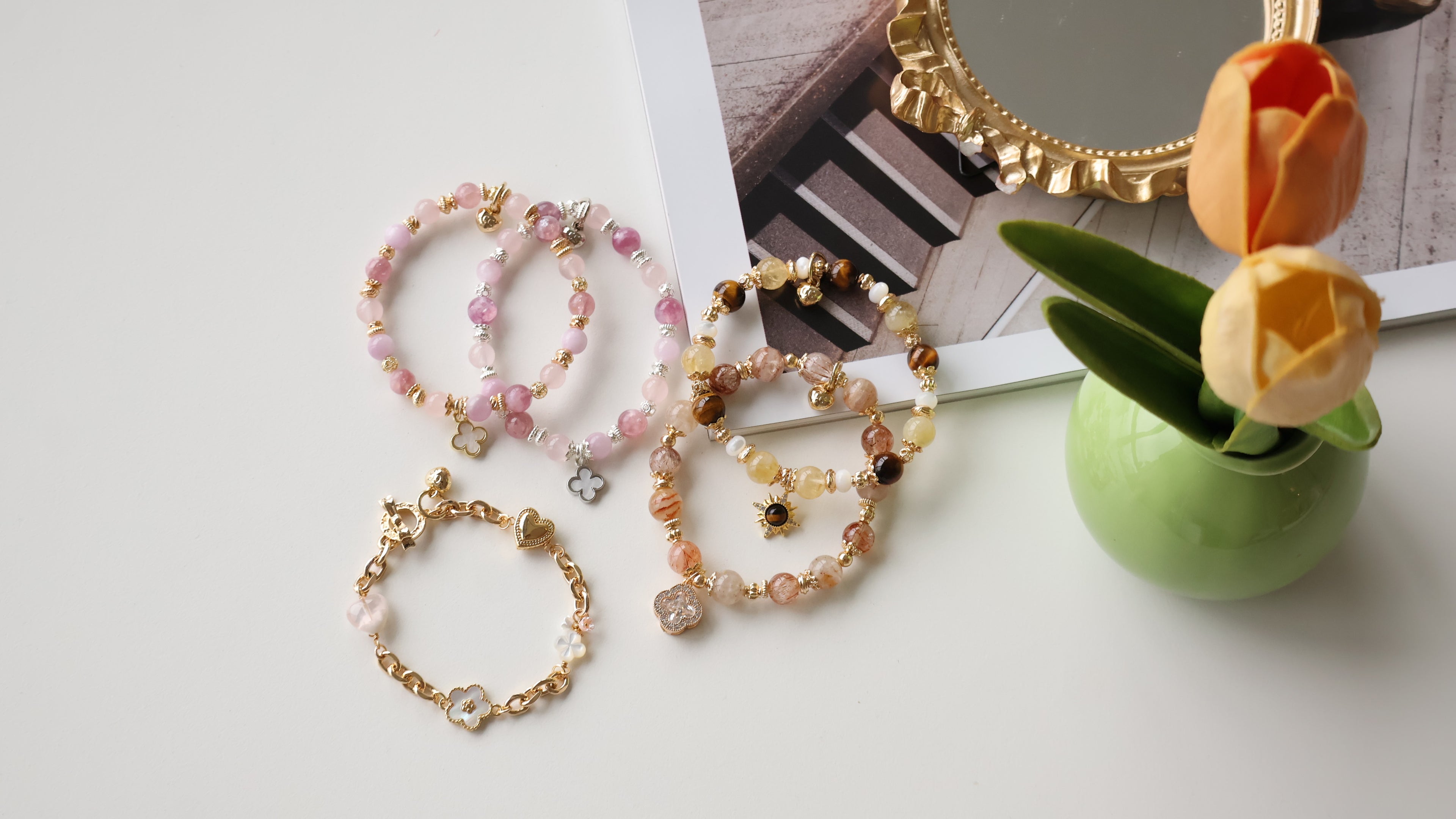 *Backorder* Cordelia Twin - Wuji Jadeite, Labradorite & Black Strawberry Quartz with Sparkly Clover Crystal Bracelet (Elastic)